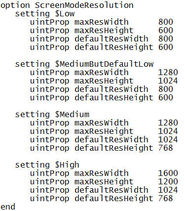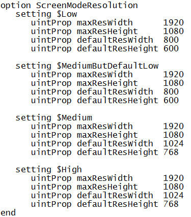 seti High 3"Next, use Ctrl+F to find "ScreenModeResolution" (no spaces or quotation marks) in the file. You should find yourself in the section that looks like this: